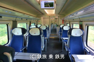 PesaDart型とFlirt3型はオープンサロンタイプ(通路挟んで2席+2席)。