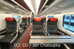 チェコの高速列車。目的地により早く到着できるようにカーブでもスピードを落とさず運行できる振り子式技術を導入しています。