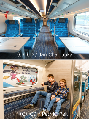 9歳以下の子供と一緒の場合、4号車43-46座席、4号車53-56番座席、63-66番座席を選択することで、ボードゲームが楽しめます(但しチェコ語)。