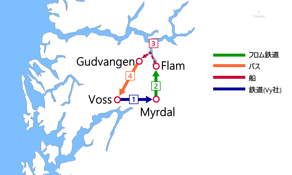 - ➊Bergen→Voss:VYリージョナル(乗車券)