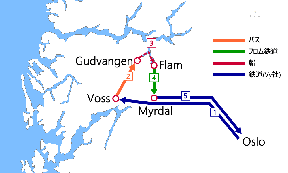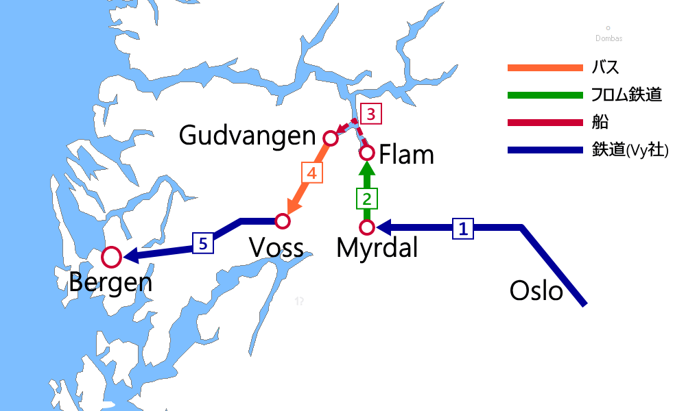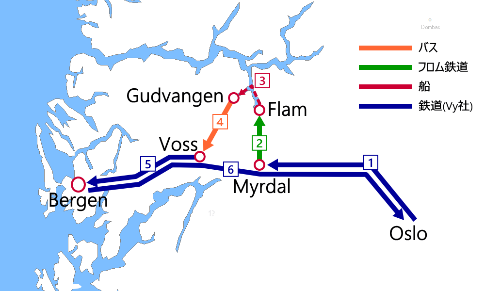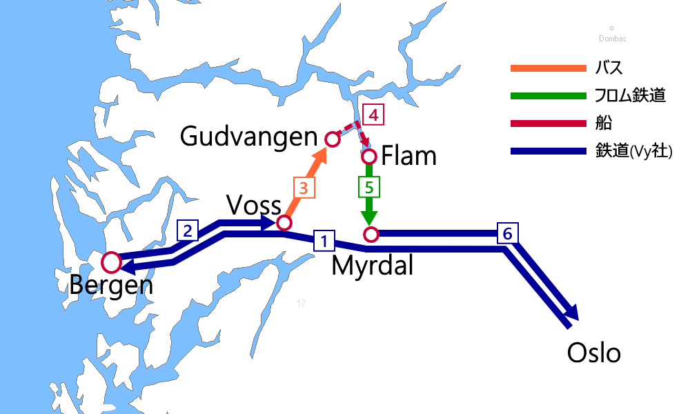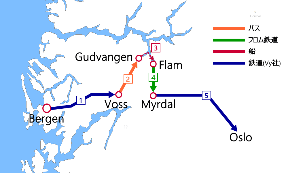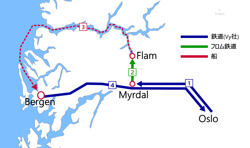 - ➊Oslo→Voss:ベルゲン鉄道(乗車券)