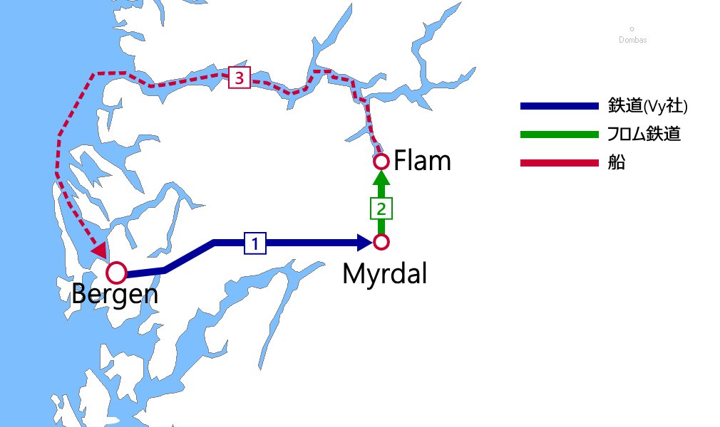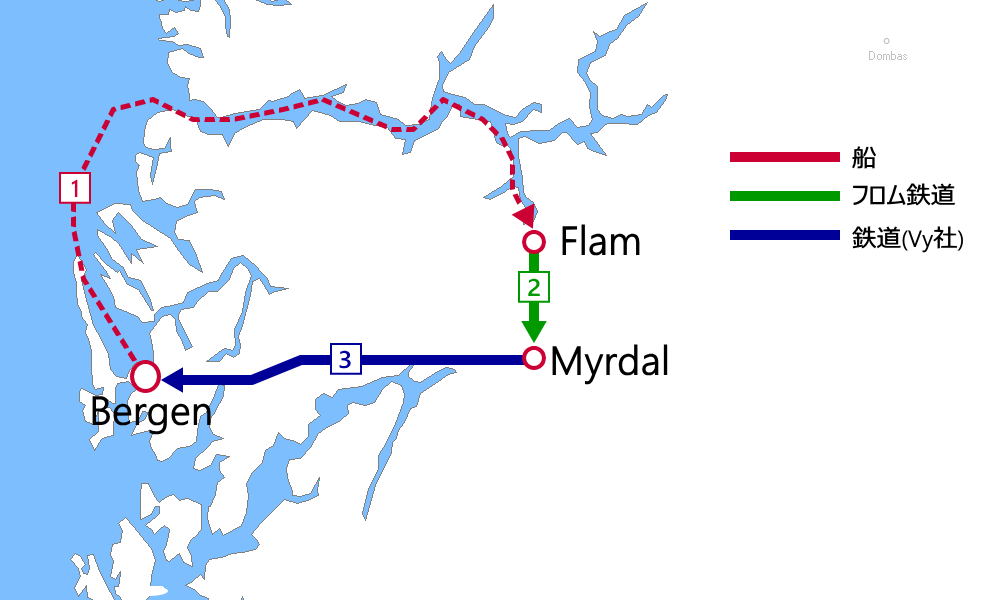 - ➊Bergen船着場→Flam:船(乗船券)