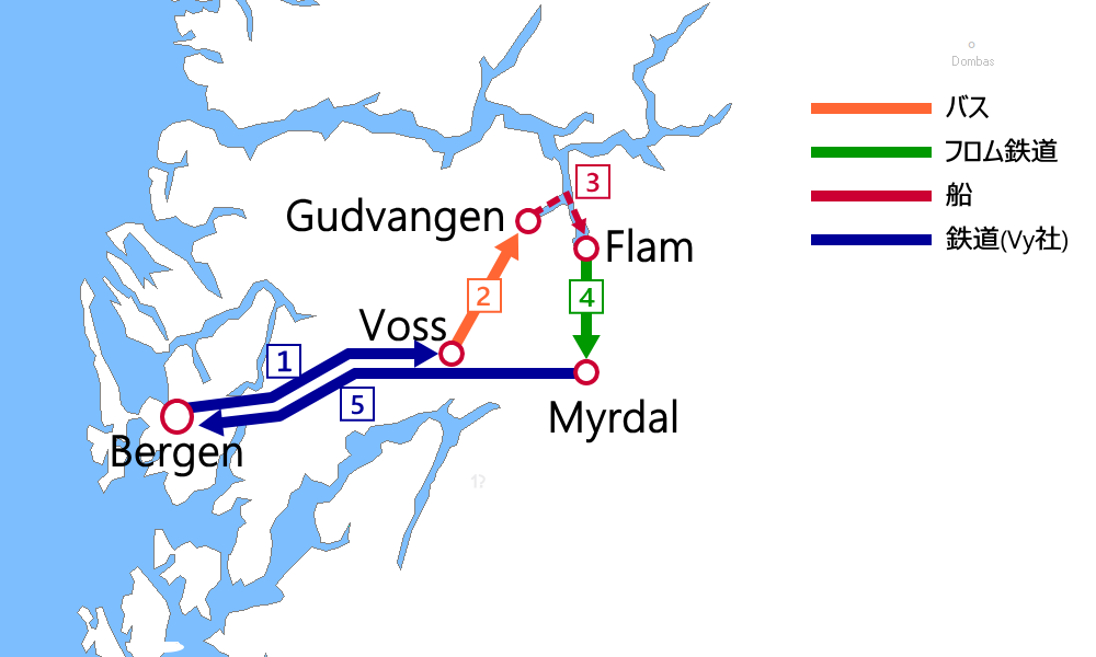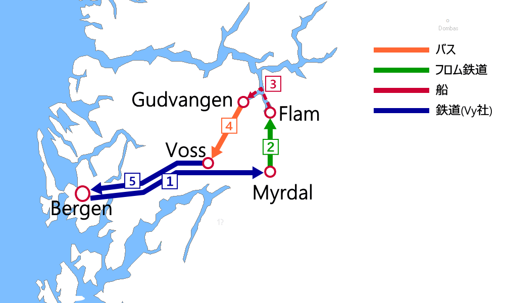 - ➊Bergen→Myrdal:ベルゲン鉄道(乗車券)