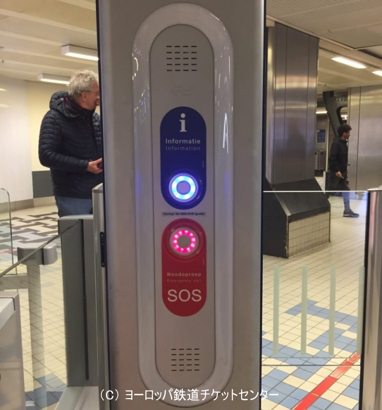 もしこのカードをかざしても自動改札機が反応しない場合、Infomationの呼び出しボタン(青色)を押すと鉄道職員が来るので乗車券を提示すると自動改札を通してくれます。