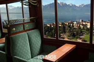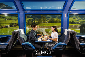 ゴールデンパス急行MOBとはスイス三大急行の一つでブドウ畑が広がる景勝路線の運営を担っているMOB社が運営する観光列車。